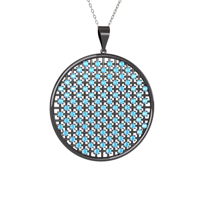 Akuamarin 925 ayar siyah rodyum kaplama gümüş kolye (40 cm beyaz altın rolo zincir)