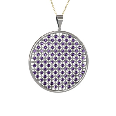 Ametist 14 ayar beyaz altın kolye (40 cm altın rolo zincir)