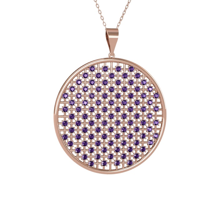 Ametist 14 ayar rose altın kolye (40 cm rose altın rolo zincir)