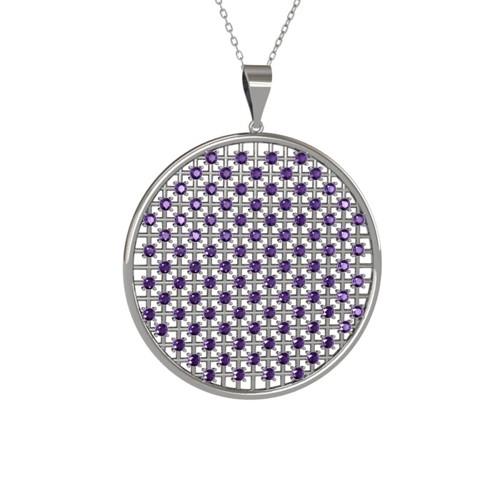 Ametist 18 ayar beyaz altın kolye (40 cm gümüş rolo zincir)