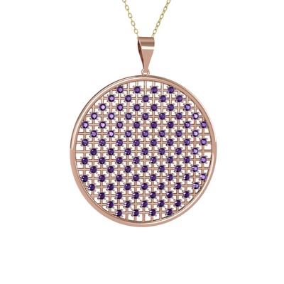 Ametist 18 ayar rose altın kolye (40 cm altın rolo zincir)