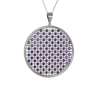 Ametist 925 ayar gümüş kolye (40 cm rose altın rolo zincir)