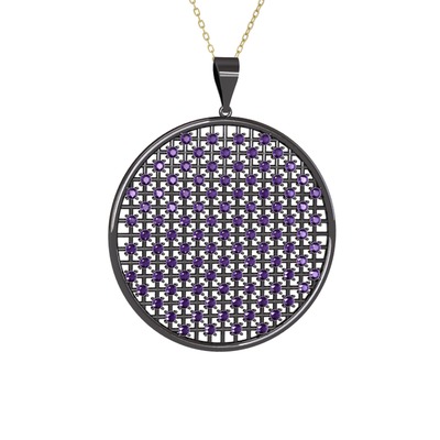 Ametist 925 ayar siyah rodyum kaplama gümüş kolye (40 cm altın rolo zincir)