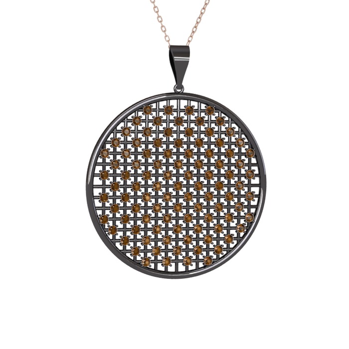 Dumanlı kuvars 925 ayar siyah rodyum kaplama gümüş kolye (40 cm gümüş rolo zincir)