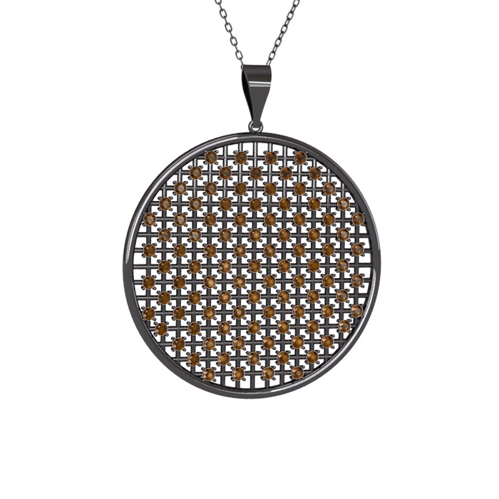 Dumanlı kuvars 925 ayar siyah rodyum kaplama gümüş kolye (40 cm gümüş rolo zincir)