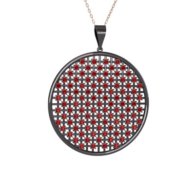 Garnet 925 ayar siyah rodyum kaplama gümüş kolye (40 cm rose altın rolo zincir)