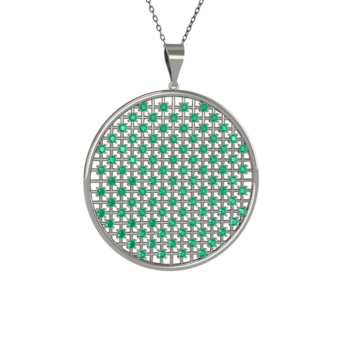 Kök zümrüt 8 ayar beyaz altın kolye (40 cm gümüş rolo zincir)