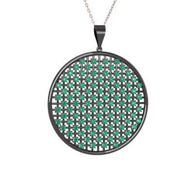 Kök zümrüt 925 ayar siyah rodyum kaplama gümüş kolye (40 cm rose altın rolo zincir)