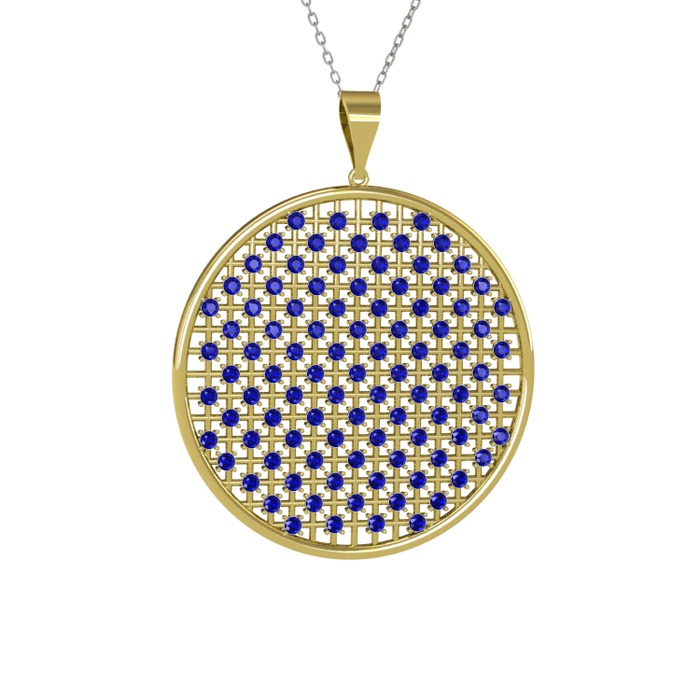 Lab safir 18 ayar altın kolye (40 cm beyaz altın rolo zincir)