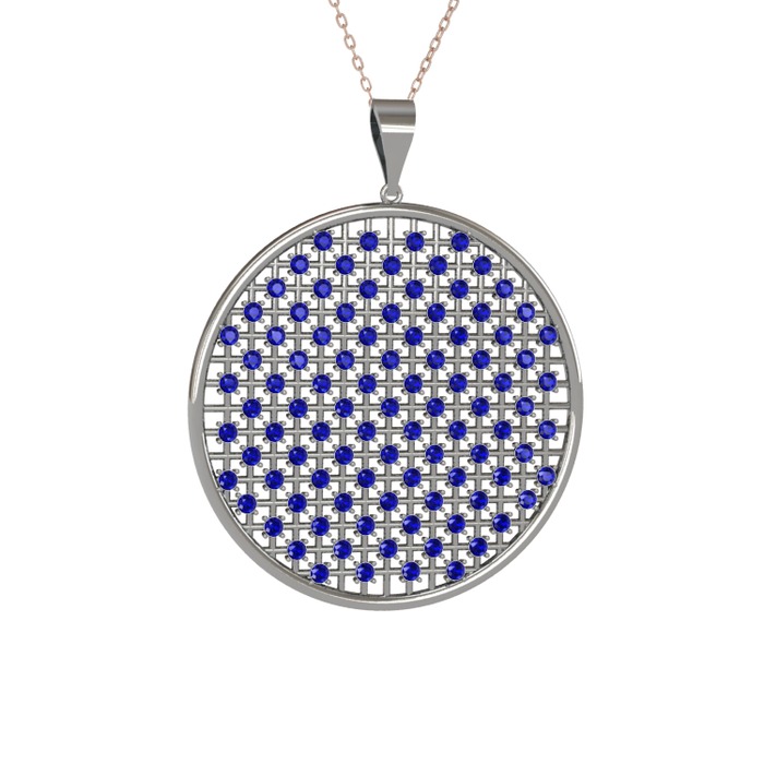 Lab safir 8 ayar beyaz altın kolye (40 cm rose altın rolo zincir)