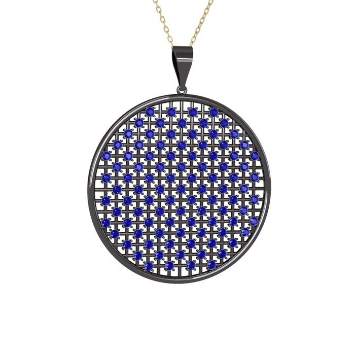Lab safir 925 ayar siyah rodyum kaplama gümüş kolye (40 cm gümüş rolo zincir)