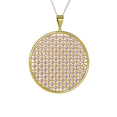 Pembe kuvars 14 ayar altın kolye (40 cm gümüş rolo zincir)