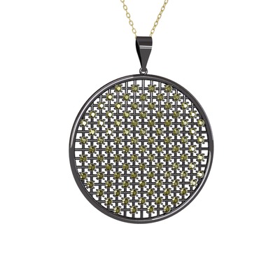 Peridot 925 ayar siyah rodyum kaplama gümüş kolye (40 cm altın rolo zincir)