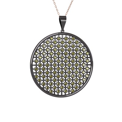 Peridot 925 ayar siyah rodyum kaplama gümüş kolye (40 cm rose altın rolo zincir)