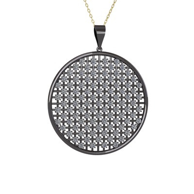 Pırlanta 925 ayar siyah rodyum kaplama gümüş kolye (10.67 karat, 40 cm gümüş rolo zincir)