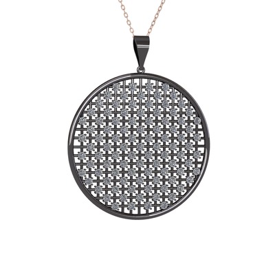Pırlanta 925 ayar siyah rodyum kaplama gümüş kolye (10.67 karat, 40 cm rose altın rolo zincir)