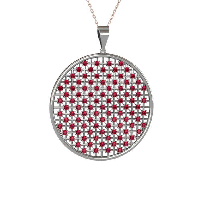 Rodolit garnet 18 ayar beyaz altın kolye (40 cm rose altın rolo zincir)