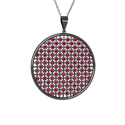 Rodolit garnet 925 ayar siyah rodyum kaplama gümüş kolye (40 cm gümüş rolo zincir)