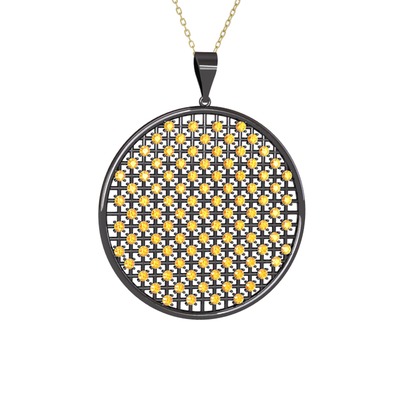 Sitrin 925 ayar siyah rodyum kaplama gümüş kolye (40 cm gümüş rolo zincir)