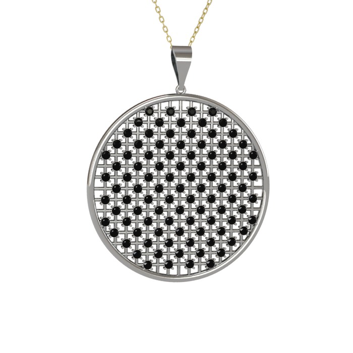Petek Kolye - Siyah zirkon 14 ayar beyaz altın kolye (40 cm altın rolo zincir)