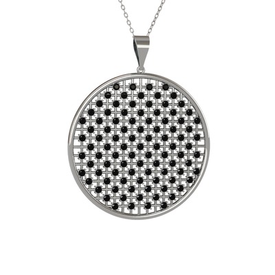 Siyah zirkon 925 ayar gümüş kolye (40 cm beyaz altın rolo zincir)