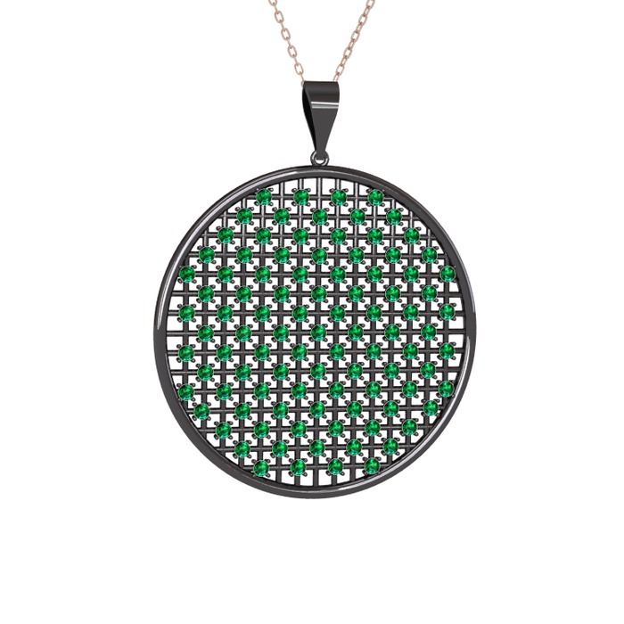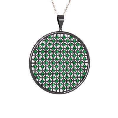 Yeşil kuvars 925 ayar siyah rodyum kaplama gümüş kolye (40 cm rose altın rolo zincir)