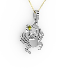 Peridot ve pırlanta 18 ayar beyaz altın yüzük (0.21 karat)