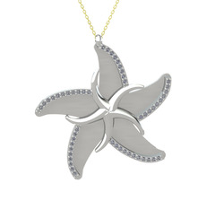 Beyaz zirkon ve pırlanta 18 ayar beyaz altın kolye (0.324 karat, 40 cm beyaz altın rolo zincir)