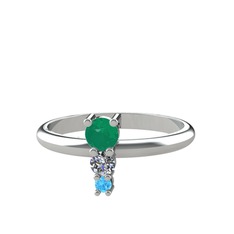Pırlanta, peridot ve akuamarin 18 ayar altın yüzük (0.5 karat)