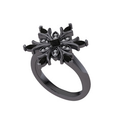 Siyah zirkon ve pırlanta 18 ayar altın yüzük (0.22 karat)