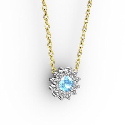 Akuamarin ve pırlanta 18 ayar beyaz altın kolye (0.1056 karat, 40 cm altın rolo zincir)