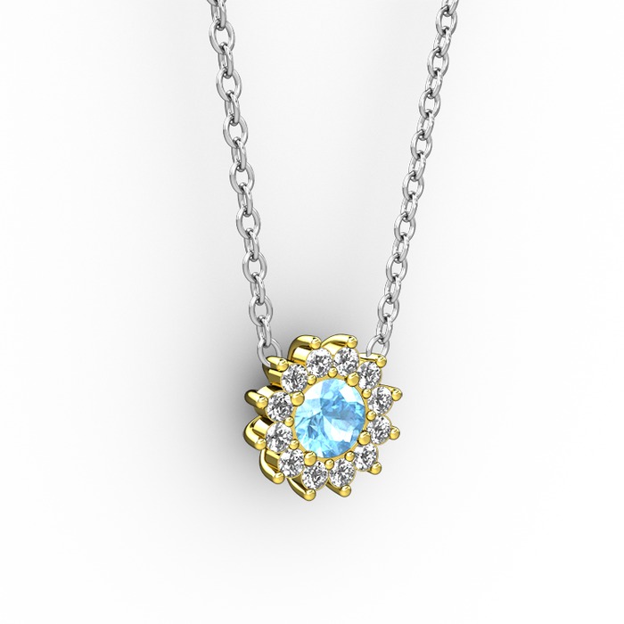 Akuamarin ve pırlanta 8 ayar altın kolye (0.1056 karat, 40 cm gümüş rolo zincir)