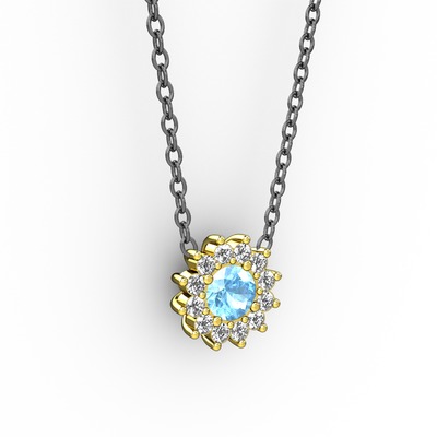 Akuamarin ve pırlanta 8 ayar altın kolye (0.1056 karat, 40 cm gümüş rolo zincir)