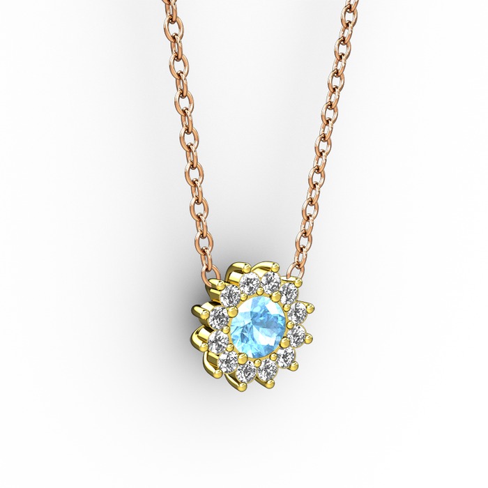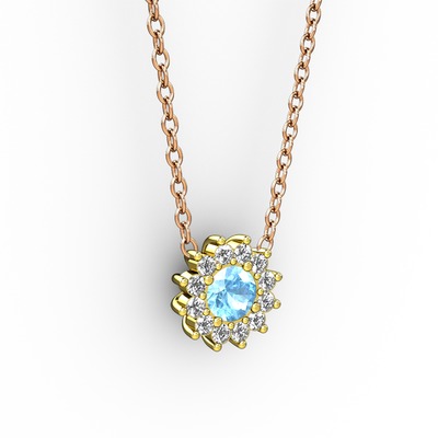 Akuamarin ve pırlanta 8 ayar altın kolye (0.1056 karat, 40 cm rose altın rolo zincir)