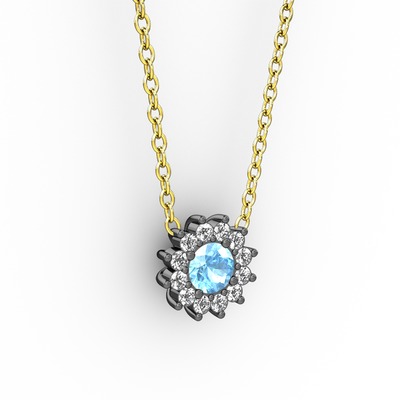 Akuamarin ve pırlanta 925 ayar siyah rodyum kaplama gümüş kolye (0.1056 karat, 40 cm gümüş rolo zincir)