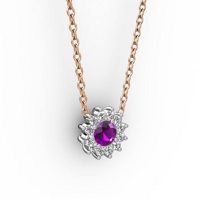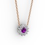 Ametist ve pırlanta 18 ayar beyaz altın kolye (0.1056 karat, 40 cm rose altın rolo zincir)