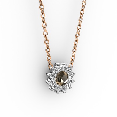 Dumanlı kuvars ve pırlanta 14 ayar beyaz altın kolye (0.1056 karat, 40 cm rose altın rolo zincir)