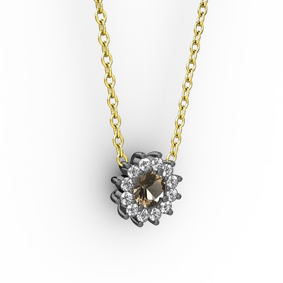 Dumanlı kuvars ve pırlanta 925 ayar siyah rodyum kaplama gümüş kolye (0.1056 karat, 40 cm gümüş rolo zincir)