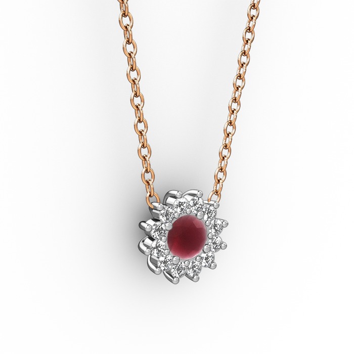 Kök yakut ve pırlanta 18 ayar beyaz altın kolye (0.1056 karat, 40 cm rose altın rolo zincir)