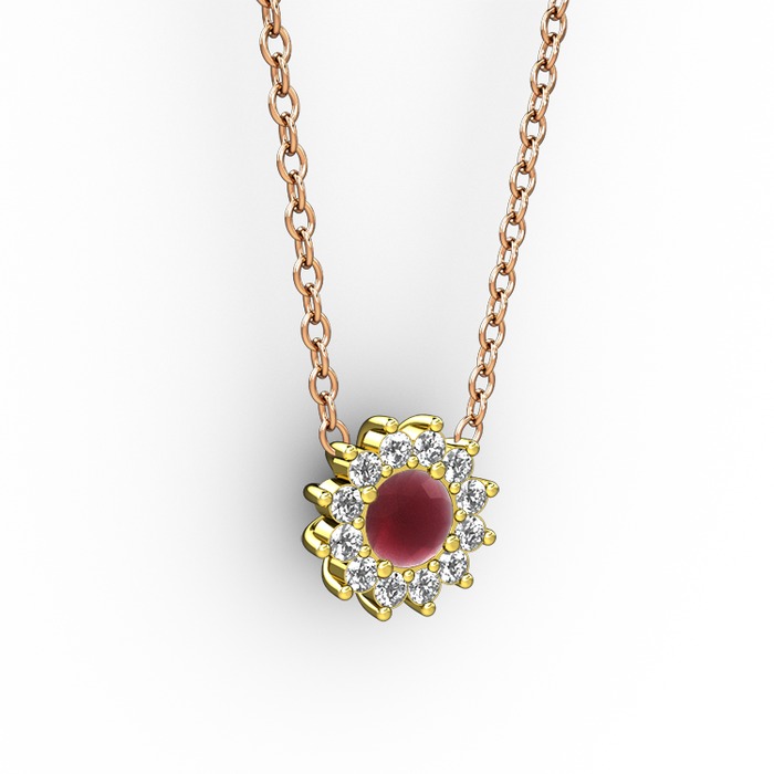 Kök yakut ve pırlanta 8 ayar altın kolye (0.1056 karat, 40 cm rose altın rolo zincir)