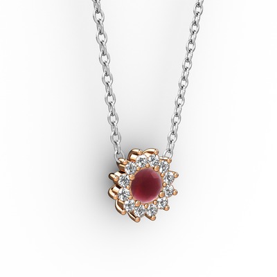 Kök yakut ve pırlanta 925 ayar rose altın kaplama gümüş kolye (0.1056 karat, 40 cm beyaz altın rolo zincir)