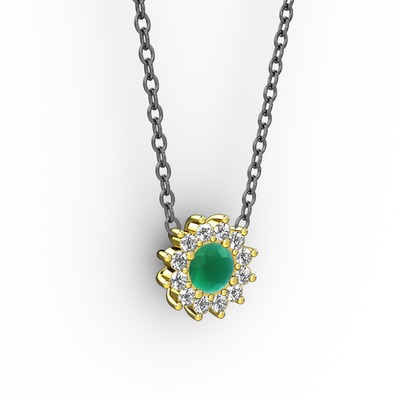 Kök zümrüt ve pırlanta 14 ayar altın kolye (0.1056 karat, 40 cm gümüş rolo zincir)