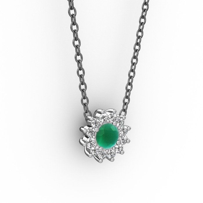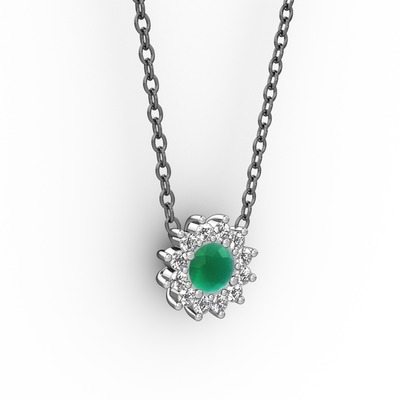Kök zümrüt ve pırlanta 18 ayar beyaz altın kolye (0.1056 karat, 40 cm gümüş rolo zincir)