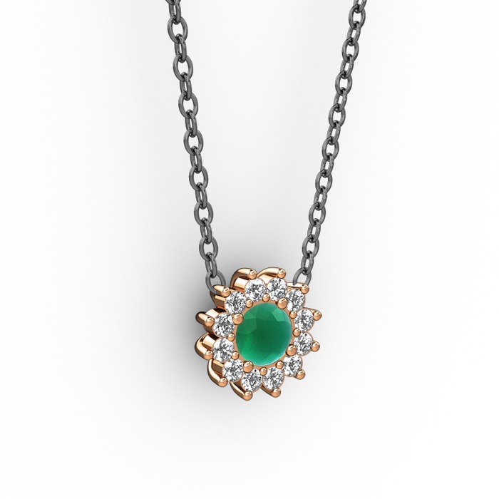 Kök zümrüt ve pırlanta 18 ayar rose altın kolye (0.1056 karat, 40 cm gümüş rolo zincir)