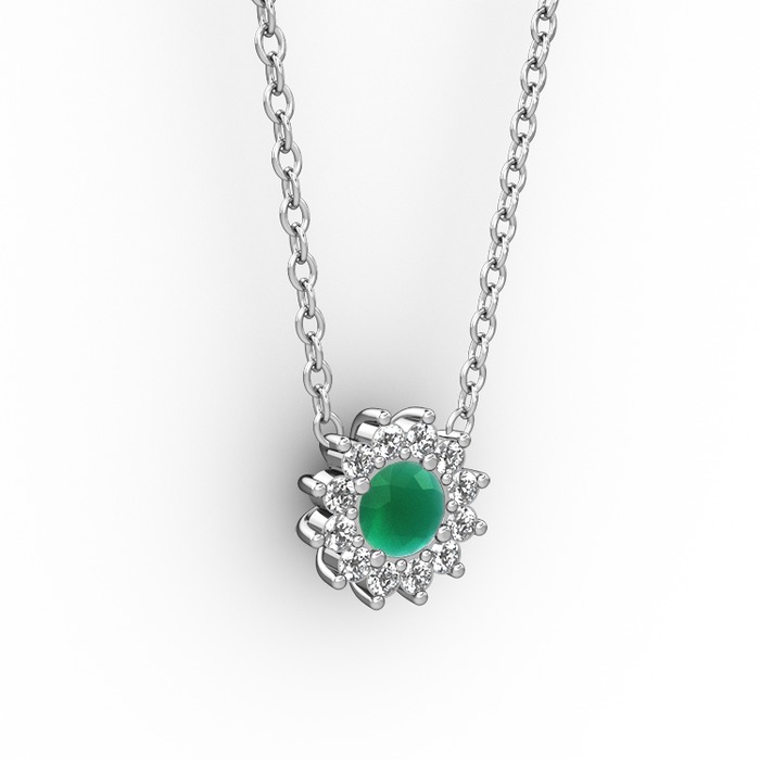 Kök zümrüt ve pırlanta 8 ayar beyaz altın kolye (0.1056 karat, 40 cm beyaz altın rolo zincir)