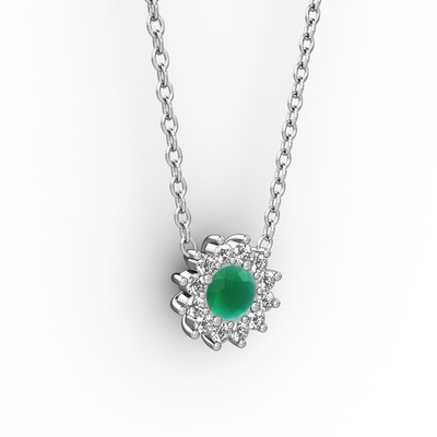 Kök zümrüt ve pırlanta 925 ayar gümüş kolye (0.1056 karat, 40 cm beyaz altın rolo zincir)
