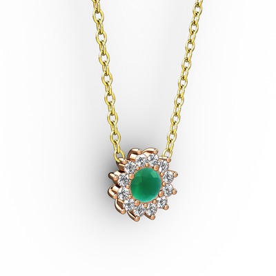 Kök zümrüt ve pırlanta 925 ayar rose altın kaplama gümüş kolye (0.1056 karat, 40 cm altın rolo zincir)