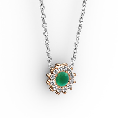 Kök zümrüt ve pırlanta 925 ayar rose altın kaplama gümüş kolye (0.1056 karat, 40 cm beyaz altın rolo zincir)