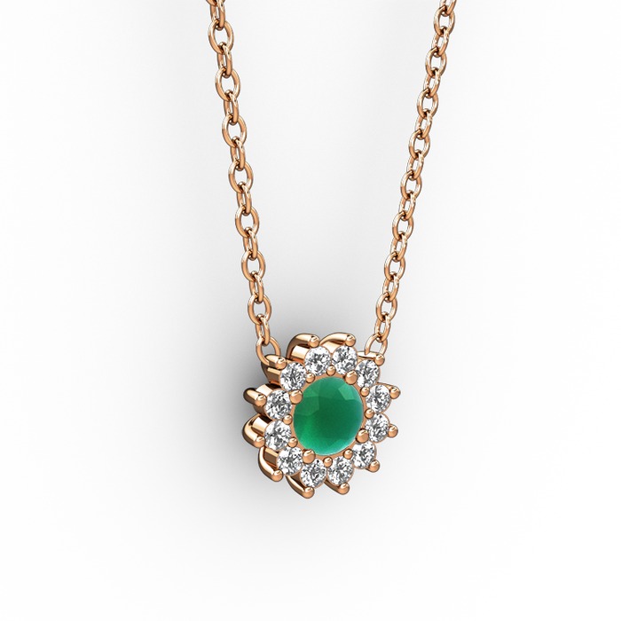 Kök zümrüt ve pırlanta 925 ayar rose altın kaplama gümüş kolye (0.1056 karat, 40 cm gümüş rolo zincir)