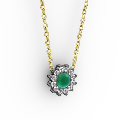 Kök zümrüt ve pırlanta 925 ayar siyah rodyum kaplama gümüş kolye (0.1056 karat, 40 cm altın rolo zincir)